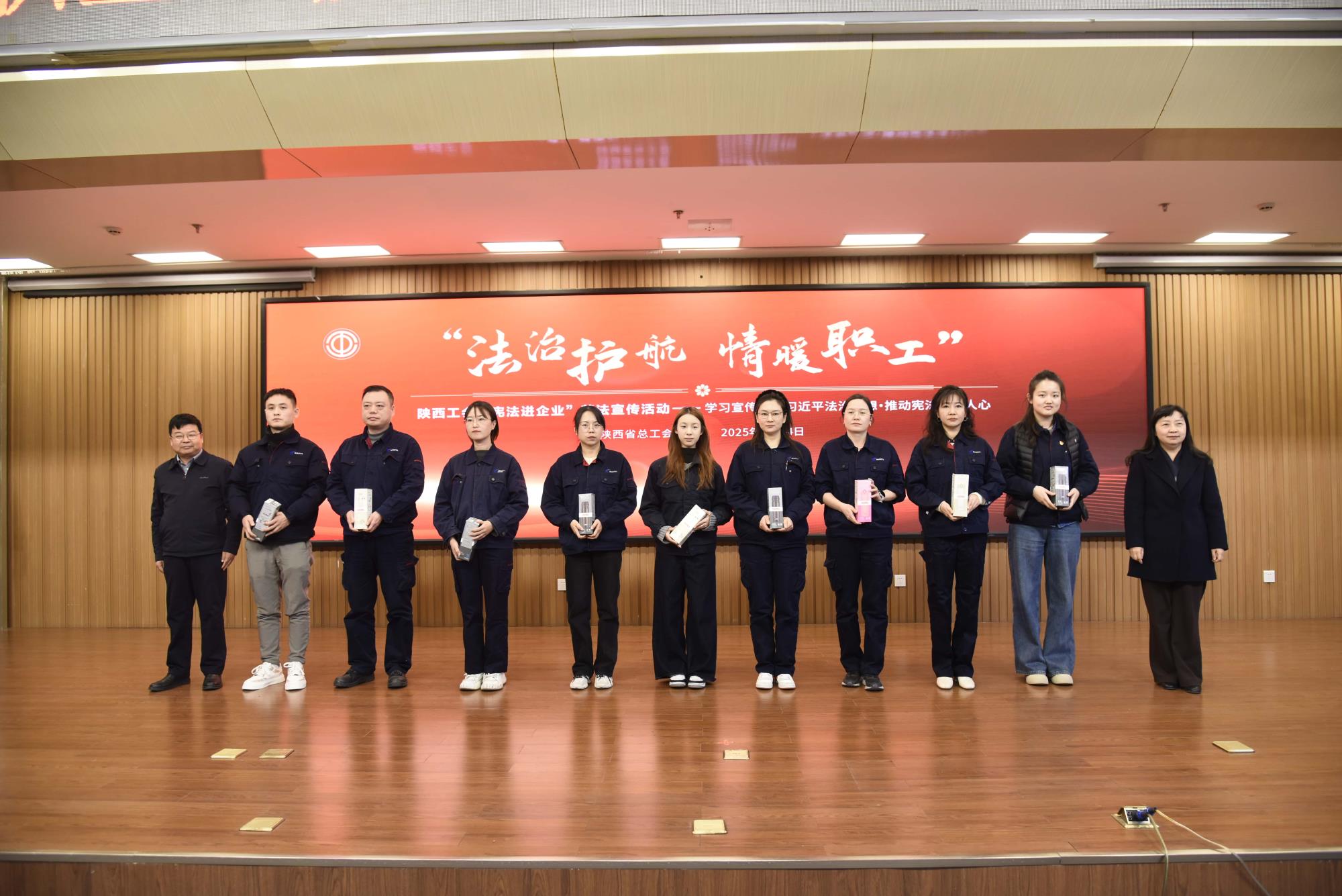 隨后,現(xiàn)場舉行了《<陜西省工會勞動法律監(jiān)督條例>學習問答》新書發(fā)布暨贈書儀式。杜佳鵬詳細介紹這本書的核心價值和實用意義;王占軍向寶鈦集團工會委員會贈書;龐欣、劉小萍為參與法律知識現(xiàn)場互動答題的職工頒獎。