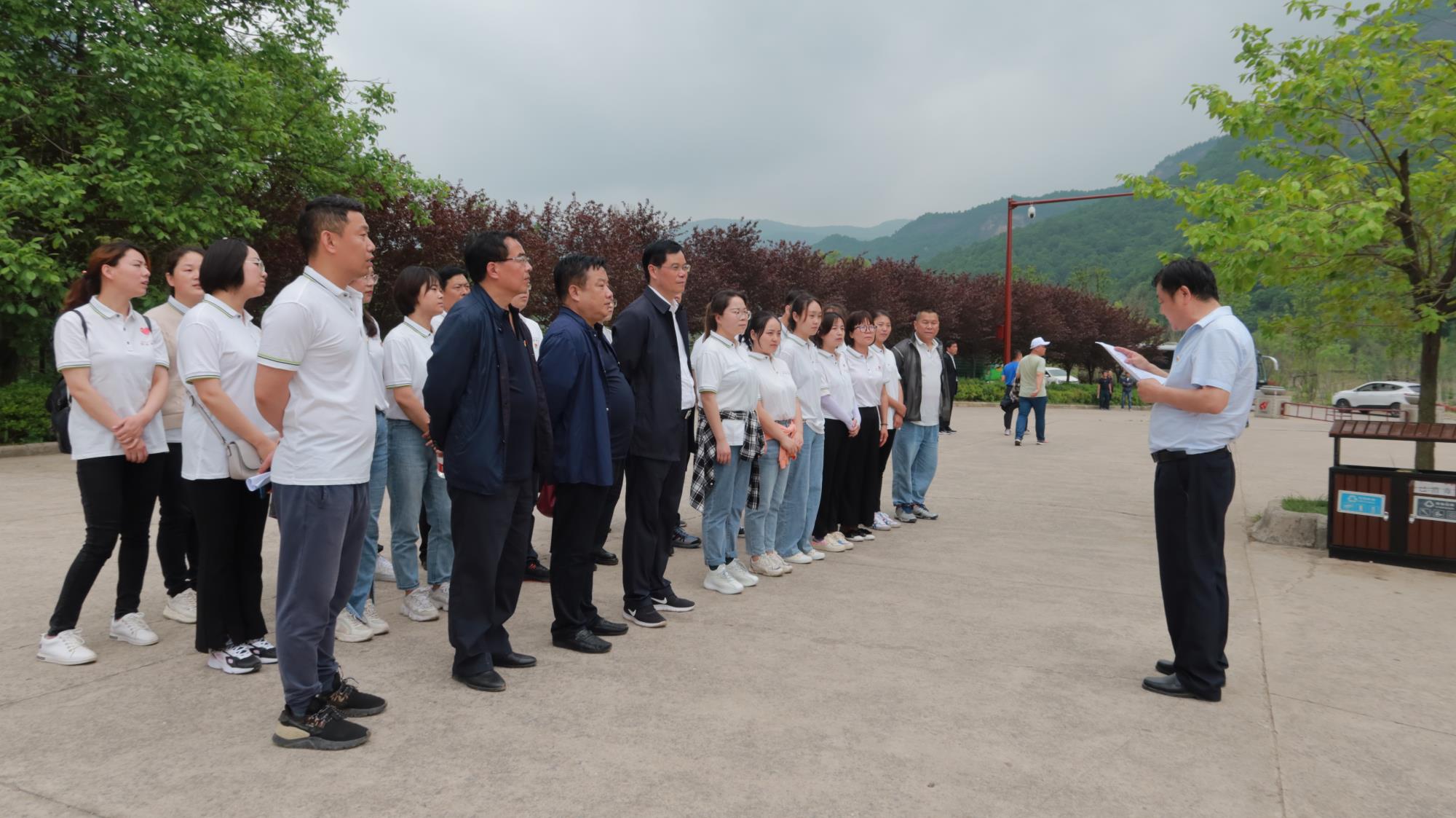 現(xiàn)場教學(xué)后,在巨型紅色馬燈廣場,黨旗見證,誓言錚錚,鄧建業(yè)領(lǐng)誓,大家面對鮮艷黨旗重溫入黨誓詞。