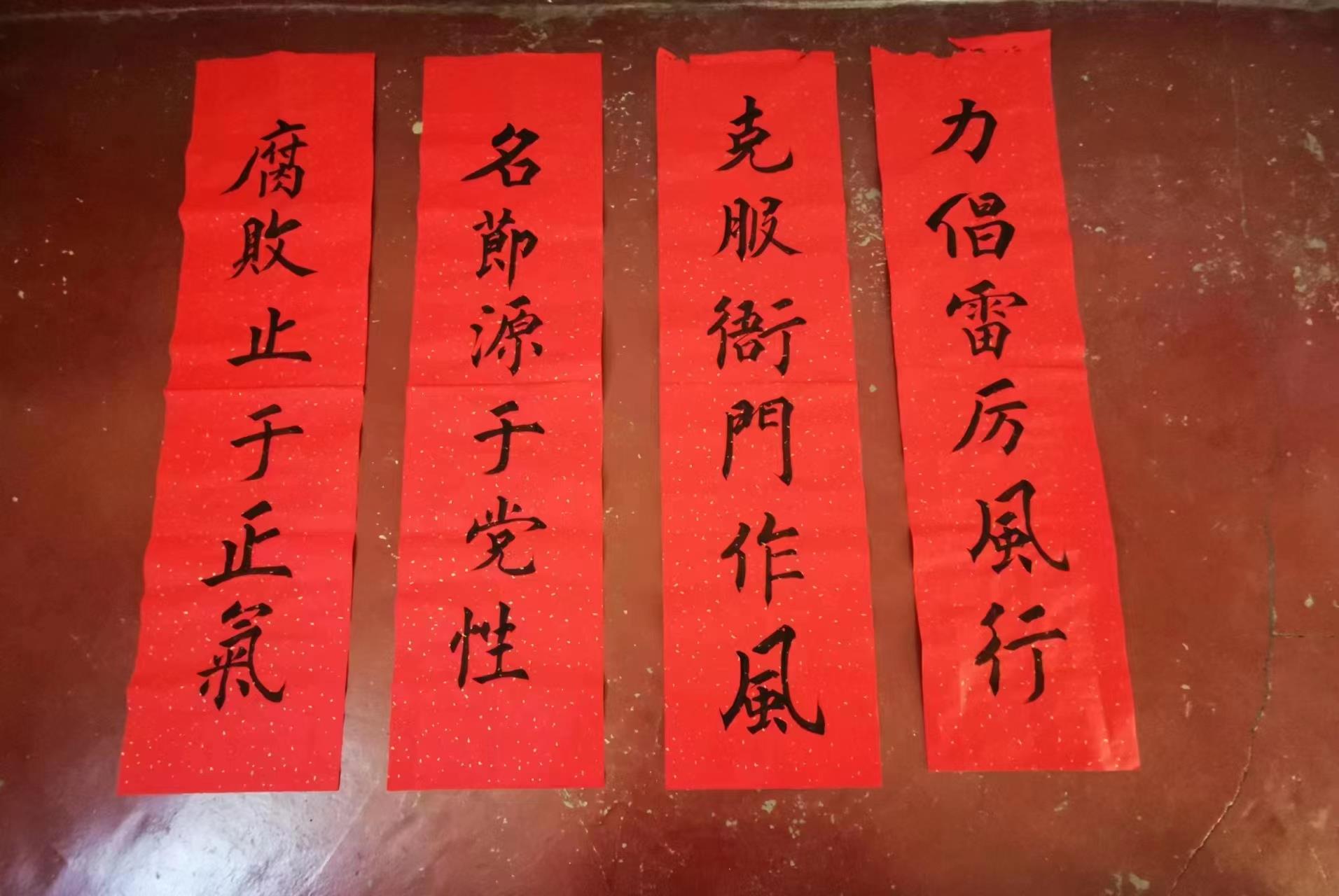 廉潔宣傳創(chuàng)新求變。紀(jì)檢干部聚焦監(jiān)督第一職責(zé),不斷創(chuàng)新監(jiān)督方式方法,嚴(yán)防“四風(fēng)”問(wèn)題反彈。在關(guān)鍵節(jié)點(diǎn)開(kāi)展廉潔提醒宣傳,對(duì)重點(diǎn)崗位采取談心談話機(jī)制,加大對(duì)重點(diǎn)工作監(jiān)督落實(shí)力度,篩選從古至今反腐倡廉名言警句20余條,邀請(qǐng)單位書(shū)法愛(ài)好者高宗同志撰寫廉潔宣傳標(biāo)語(yǔ)10余條,持續(xù)深化“三不”機(jī)制一體推進(jìn),全面提升正風(fēng)肅紀(jì)反腐效能。