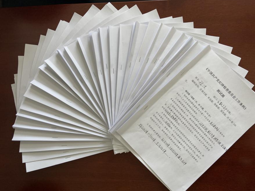 為檢驗學(xué)習(xí)成果,2022年6月15日,公司紀委量身定制了一場測試,公司各基層紀檢干部共計24人參加了測試。本次測試采取了統(tǒng)一命題、集中組織、閉卷答題的方式,題型包括填空題、單選題、簡答題等共44題,答題時長1小時。通過測試,有針對性的進行查漏補缺,夯實紀檢干部的理論基礎(chǔ),進一步強化應(yīng)用水平,提升業(yè)務(wù)能力。