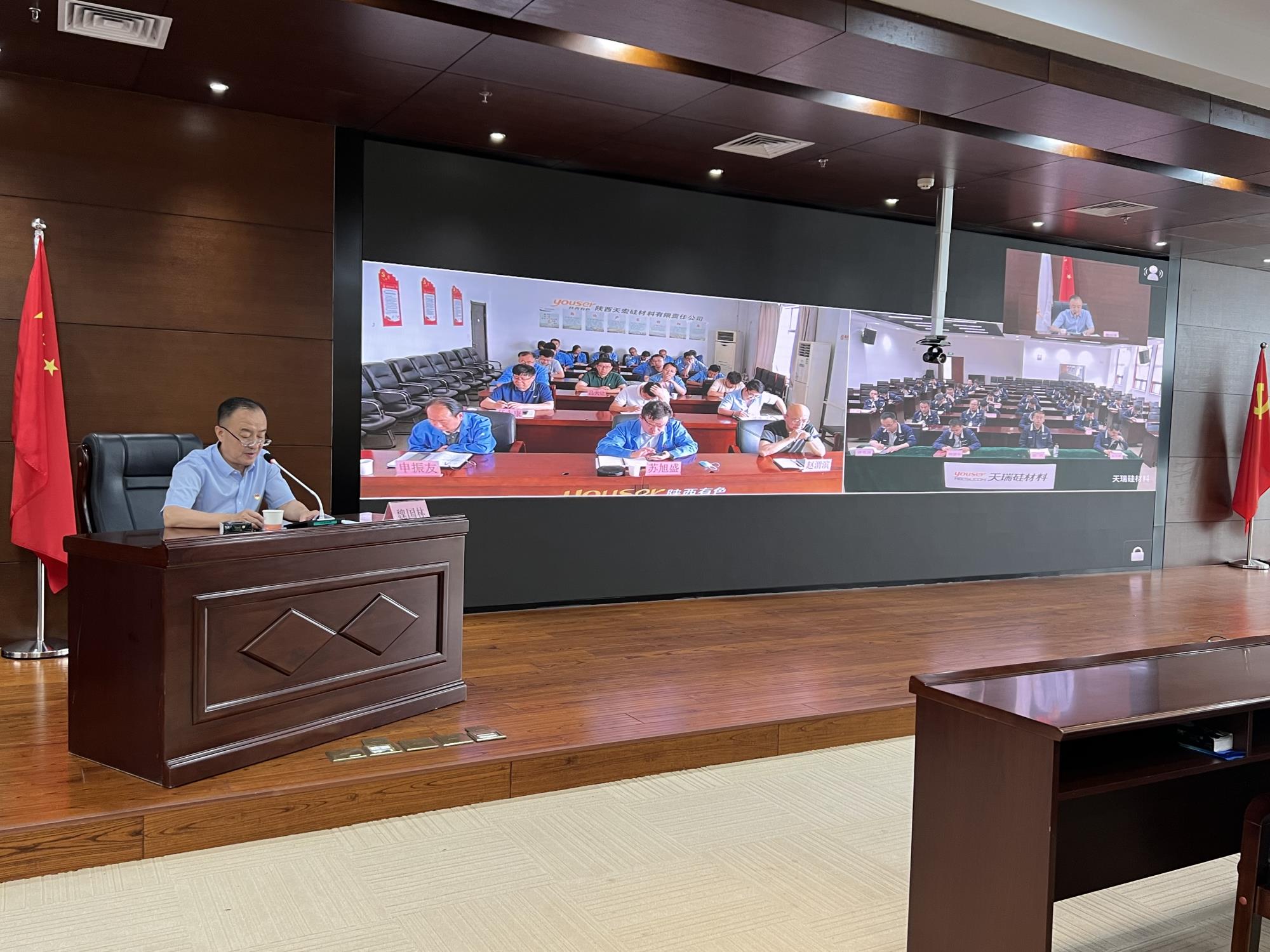 本次宣講會以視頻形式召開。集團公司總部機關四支部全體黨員在主會場參會,天瑞硅材料公司、天宏硅業公司黨員干部在分會場參會。